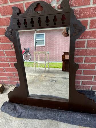 Mirror in very good condition… Strong and sturdy… Very minor ware… Made in the 6”’s… Made of oak wood… Mirror is in good shape… No breaks or cracks… No scratches… Can be attached to a dresser or vanity or hang on the wall… Mirror supports included… Mirror measures 35”W x 35”L x 1”Thick… All offers are considered… I meet my customers for pickups till 8pm… Delivery available… I accept cash or Venmo…