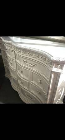 Beautiful matching French Provincial bedroom suite in classic white. This set includes everything: