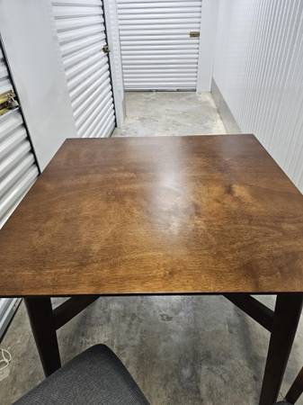 Wood countertop height dining table36 inches height Farmhouse Square Bar table, small kitchen table for 4 people. Dining room, kitchen, bar, pub, Bristo, Walnut brown 2 upholstered chairs, curved...