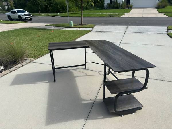 The direct Amazon search is “Teraves Reversible L Shaped Desk with Large Surface”. Dimensions are 69” long and 29” tall. Desktop width is 21”. It’s already assembled and has all of the screws and pieces, it’s still very sturdy. It’s listed on Amazon at $160, I’m asking for $115. I am located in Green Cove. I am unable to transport the desk to you, so you would have to come pick it up. You can reach me via text at show contact info