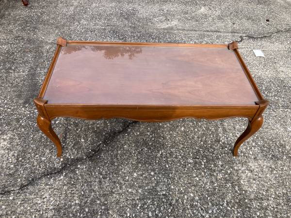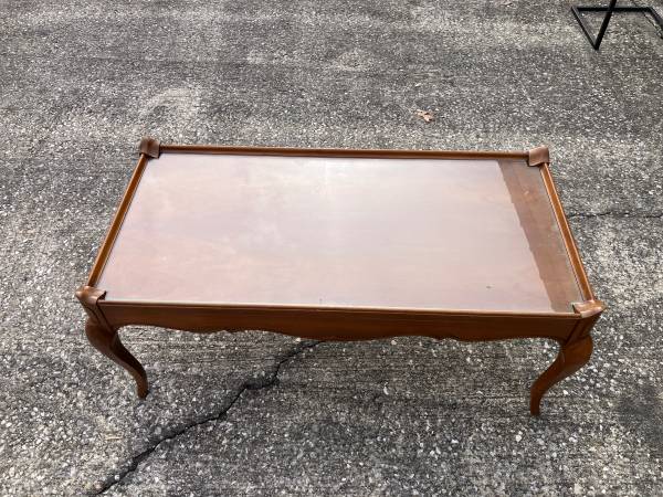 This came from my girlfriend’s father’s estate. It is definitely vintage if not antique. It is in very good condition for its age and made of solid wood with a glass top. It is a Mersman model 765.