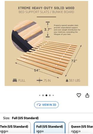 Bed Support Slats, Heavy-Duty Solid Pine Wood Bunkie Board, Full Size. Sells for $91 at Amazon. Text for pick up. Cash only, sorry no delivery available.