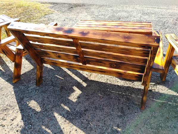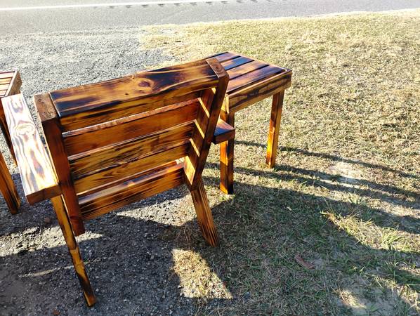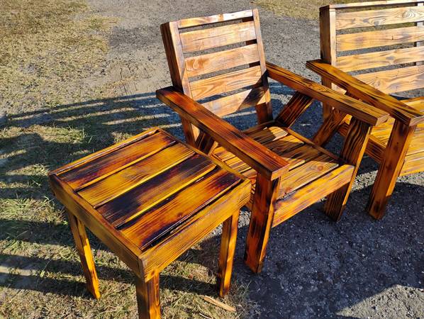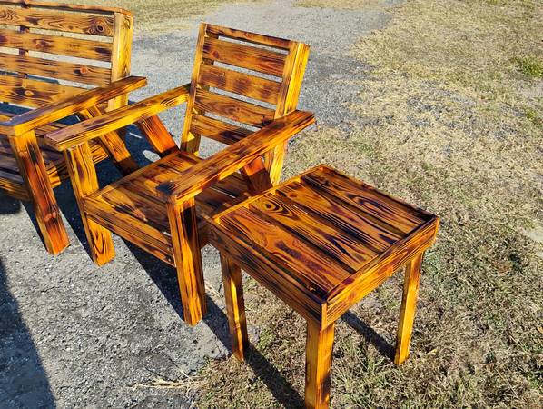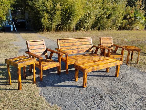 6 pc Outdoor Patio Set. Heavy Duty Set Burned In stock now. Only making a limit amount of sets this year. HIGH QUALITY Reclaimed NATURAL WOOD TEXT or Email through CL Pick-up and FREE local...