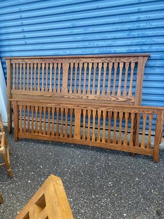 Shaker style king bed. Wood slats with shaker architectural details/ Headboard footboard rails.