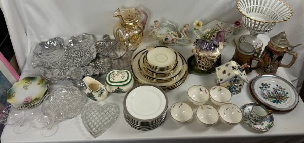 Garage Sale Sat 10/18 from 7:00 till 12:00. 9973 Dovetail Court North 32257. Vintage and antique collectibles and dishes. Super rare extra large, 36 inch tall, Lynn Haney Santa Claus with 3 dogs. Full service for 8 of vintage Sango China from Japan. Updated vintage furniture. Antique 6 leg Entryway table. Antique "Boiled P-Nuts" sign. Large vintage Bru Jne doll. Large vintage metal Christmas ornaments. Leather jackets and vests. Household items and cookware. Kid's clothes, toys, and stuffed animals. Whole box of vintage WWF VHS tapes with Hulk Hogan, Andre the Giant, and The Rock. There will be a lot more than in the photos. I will be giving deals for bundles and taking offers. EVERYTHING WILL BE PRICED TO SELL!!!