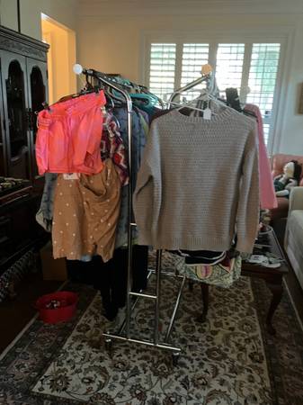 Clothes (infants, children, women’s and men’s) shoes, purses, desk, table, instant pot, air fryer, mandoline, cutlery, tools, drill, skateboard, toys, puzzles, sound bar, plants, books, car seat, cookbooks, jewelry, child’s bike, wheelchair, crutches, wreaths, cut glass, dishes, magnetic under desk elliptical, life size crochet dolls and mote. Come see all our great bargains.