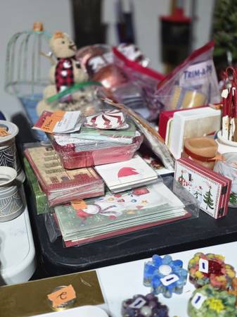 Clothes, home decor, christmas, stuffed animals, handmade items, Lots and lots of odds and ends, glassware, dishes, craft supplies