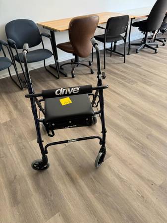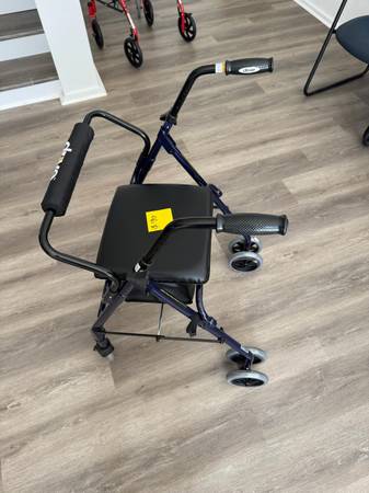 (OPEN BOX) Height handle adjusts from 32'-39' Weighs only 15 lbs. Seat is 14'W x 13'D Floor to seat height is 22' Overall 24'W x 27'L Weight capacity 300 lbs.