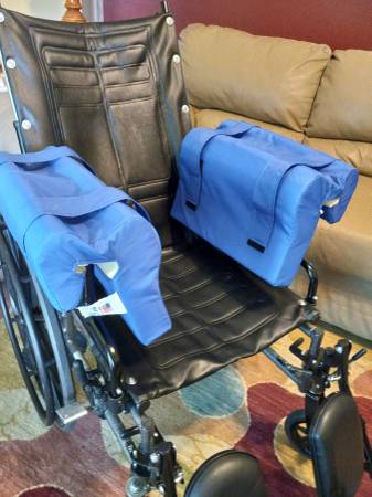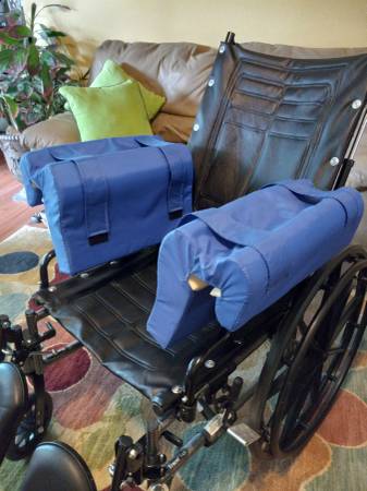 Invacare SX5 High-back fully reclining wheelchair 18" seat. Adjustable elevated foot/calf rest. 250 lbs weight capacity. Foldable for easy transport. Also, includes armrests cushion and seat...