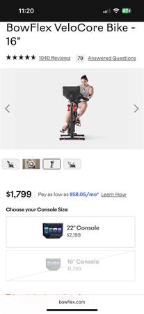https://www.bowflex.com/product/velocore-22-exercise-bike/100914.html Hardly used Bowflex bike. Bought January this year. Still has warranty that I will transfer over. Has bigger seat and smaller...