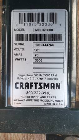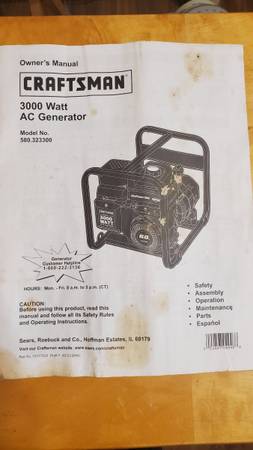 Craftsman 3000 watt generator. Low running hours. Very good condition. New air filter and oil change. . Ask for Jay.