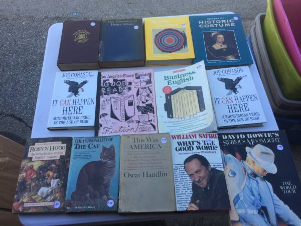 Books Books Books, at Ramona Flea Market Westside at Booth # B007 all kinds off books as seen on the pictures, please stop see us it's near to the office building second entrance all the way back