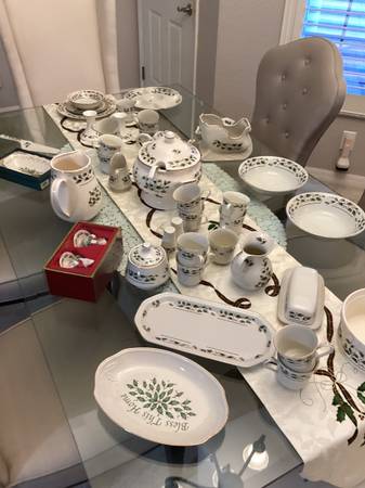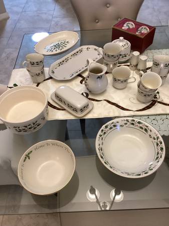 Beautiful Lenox complete Christmas dish set. $150 or Best Offer. Pieces are as follows: 13 dinner plates with 4 very similar, 19 cups, 22 saucers, 12 individual bowls, 28 luncheon or salad plates,...
