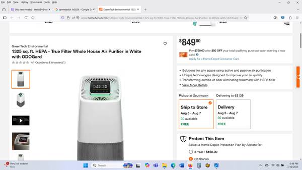 I'm selling a GreenTech 1325 sqft. HEPA True Filter Whole House Air Purifier OdoGard. It's in good condition and works fine. Comes with Purifier and Filter. You can research the model number online for product specs, technical details, etc. Model: GreenTech 1x5826. See pictures.