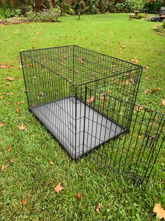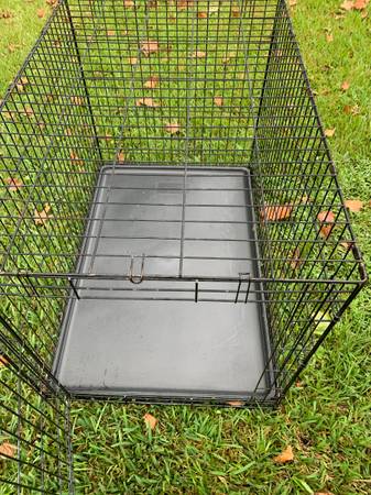 Large dog cage / crate as shown. 42" x 28" x 30" tall. No damage to the lower tray. Folds down flat for easy storage. Clean and ready to use. Please call if you are interested