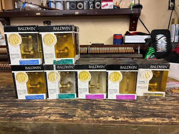 Moen 8-18" Towel Bar 9-24" Towel Bar 3 Towel Rings 2-2 Handle Faucet 1 Toilet Paper Holder 1 Single Handle Tub/Shower Set Balwin 5 Bed & Bath Latchset 4 Hall &n Closet Latchset 4 Dummy...