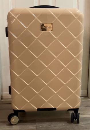 24” tan/beige hard shell suitcase. Only used once. Looks new. Measures 24” with wheels, 22” without, 16”wide 11” deep