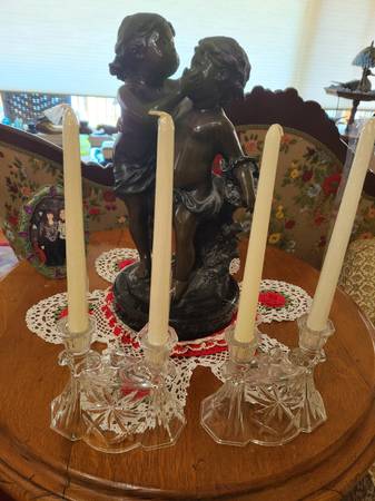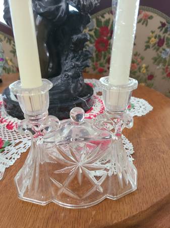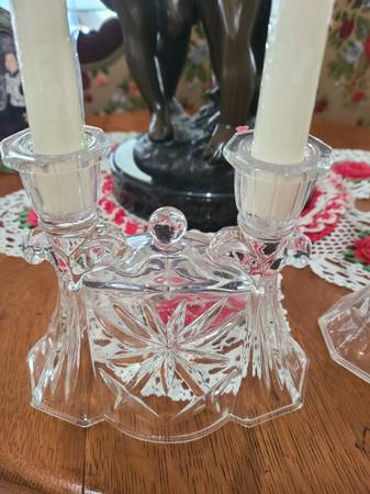 Beautiful art deco candlesticks. Great for when the lights go out or storms or end of the . Thank you just reduced Or just a romantic night at home!!!! Or a storm!!!!! 25 for the set. Last reduction