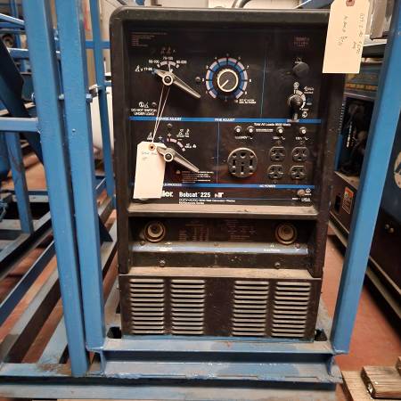 Miller Bobcat 225NT Welding machine, gas powered. 8500 Watts generator. will supply 120 VAC and 240VAC. Like new condition, always stored inside the warehouse and never outside. Has a heavy duty protective crash frame approved for offshore use, etc. Will hold 4 large O2 or other gas cylinders. Only 539 hours. Needs a new battery.