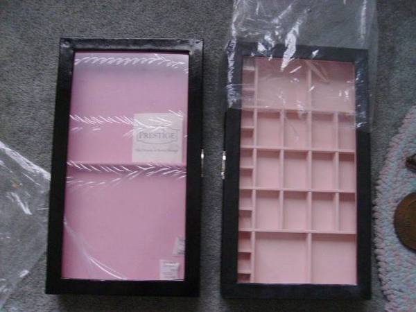 5 brand new never used still in plastic, prestige silver keepers, I am selling both together only, size is 15 inches long by 8 and a half inches wide, one is for rings earrings, and other is for large necklaces , etc. thank you the first one still has the plastic wrap on top.this keeps your silver jewelry from tarnishing.15 each. I also have new black ones, 20 each thanks see 3rd and 4th pictures. gator print on last ones . Please calls only we are retired military these are velvet lined.if you buy all of them will do a better price for you.