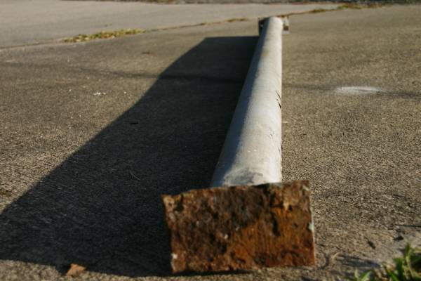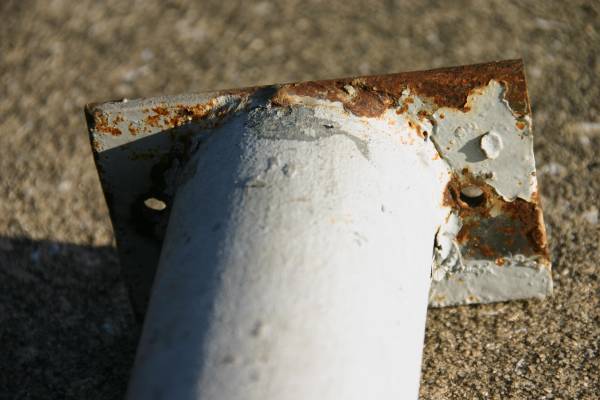 - Metal Roof Porch Support Pole - 87 1/2" long - Pipe Thickness: 2 3/4" - Flange Plates: 5"L x 3"W - Has 2 holes in one flange