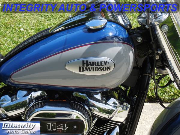 Thanks for checking out this pristine 2023 Harley Davidson Heritage Classic 114 with 1700 actual miles! This bike just came in and it looks as good as new. It has factory security, ABS and 2 tone blue and grey paint. The rest of the bike is all chromed out including the wheels. It is totally stock and fully serviced. The 114 is a lot of motor for this light bike and it’s super fun to ride for sure. You better get cracking before it’s gone. It has a 114ci V-Twin and 6 speed transmission and it’s super smooth!! This bike is a great deal so click or call today before someone beats you too it Call now to set up an appointment to have a look at it. Check out the YouTube video of it. https://youtu.be/KQ4cR1zpbnM CALL 386.788.1555 TODAY!!!!!!!!!!!
