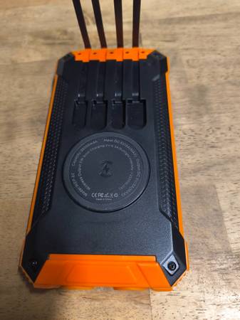 Solar Power Bank. Like new condition. Multiple outputs. Charge by sunlight or AC power 38000 mAh output also has wireless phone charging capability