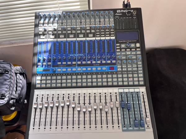 PreSonus Studio Live 16.4.2 AI digital performance and recording mixer. Includes owner's manual, PreSonus soft-sided case, and stand. Original Owner, smoke free environment. No trades needed.
