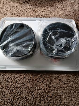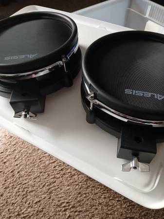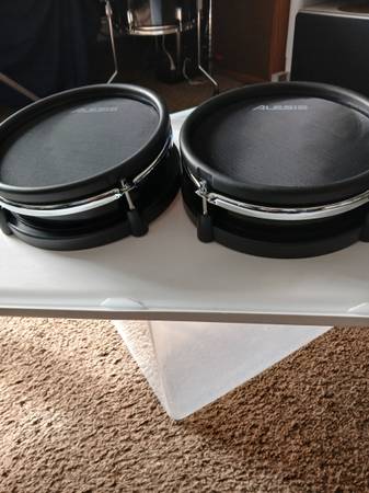 2 never used 8" black Alesis triggers. I modified a set with bigger triggers, and never used these. These mesh pads are quiet, and fast by Alesis. You can also sand and paint shells any color, easy...