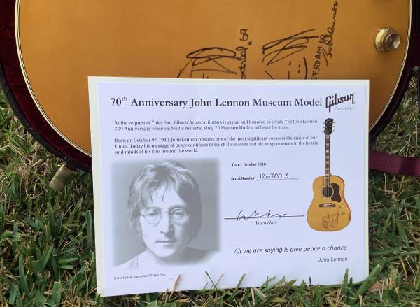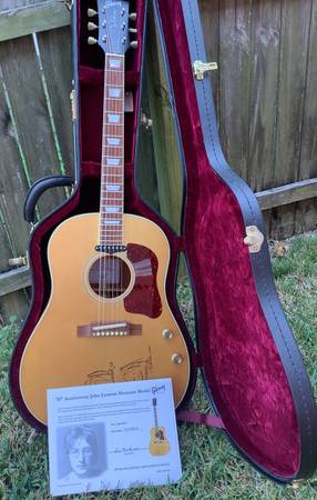 Gibson 70th Anniversary John Lennon J-160E Museum 2010 w COA – Natural in mint condition! From a smoke free home, guitar is in mint condition, rarely played, case is excellent-near mint. Rare, beautiful instrument, plays great and sounds awesome! $8500.00 Call, leave message and I will respond, land line.