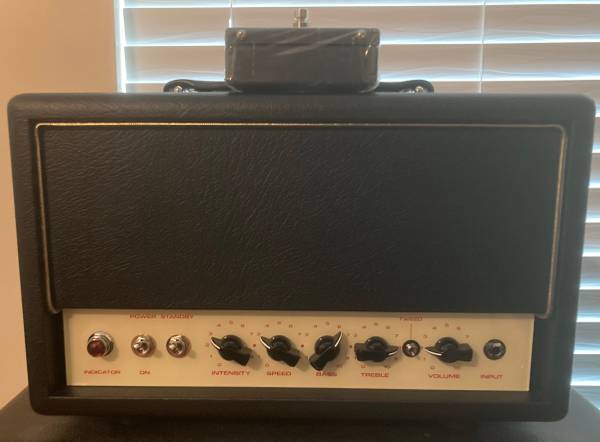 Ceriatone Champ Ultra Head. Based on 60’s Fender Blackface Vibro Champ. ‘Tweed’ switch on front panel lifts tone stack to yield a significant boost, and a decidedly more tweedy tone. Bias ModulatingTremolo circuit with footswitch included.