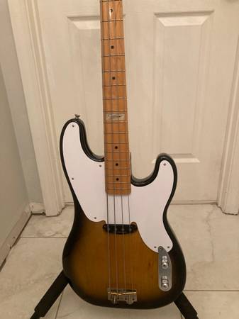 Very nice Sting Signature Fender Precision Bass. Made in Japan. Excellent condition! Early 50’s inspired. Single pickup design. Pickup has been upgraded to a SD Quarter Pounder. Upgraded RSGuitarworks bridge - great intonation. New Tomastic Infeld flats. Plays like butter!