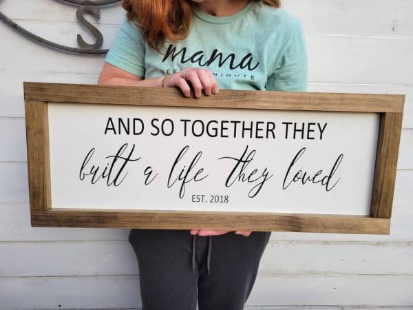 Handmade signs.... custom making them say anything you like...special dates/anniversary.....special sayings....I get started once order had been placed and payment sent. 2-3 day turnaround time . Pick up 32254 where beaver and Edgewood meet. Prices start at $25 up to $100 ...varying depending on size.
