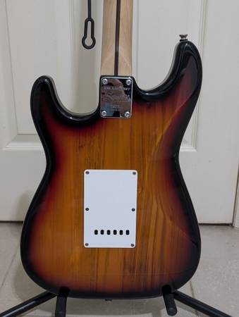 2002 Squier Stratocaster Standard sunburst with upgraded locking tuner and full size brass trem block. Price non negotiable.