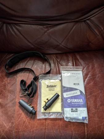 Silver intermediate level Alto Sax. All new pads, wires, corks. Reed size 2.5-3. Neck strap, cleaning cloths, 2 mouth pieces with ligatures. Case and all good to go!! Monetary value listed at $1500.00 when the sax was totally refurbished plays extremely well though no name and only 23 imprinted on the neck and body. OBO