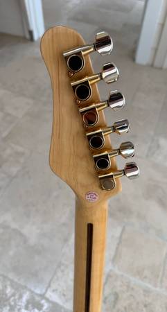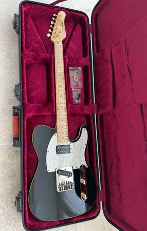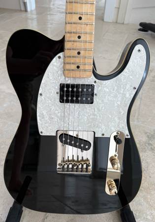 Custom bone nut, Upgraded electronics, with Seymour Duncan humbucker, CTS potentiometers; Switchcraft 3-position switch and Switchcraft input jack. Gold Dunlop Straploks included. The neck is straight, figured maple, no cracks or breaks. Action is low. Frets dressed and smooth. A few light surface scratches, overall in excellent condition. This guitar has a sweet jazz/blues tone in the neck position and rocks in the bridge position. A lot of guitar for this price, will easily hold its own against other Teles.