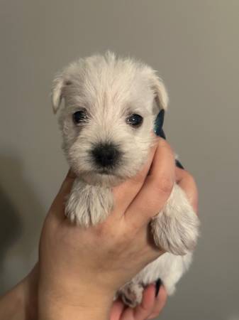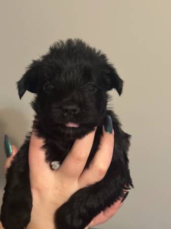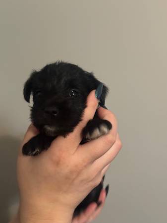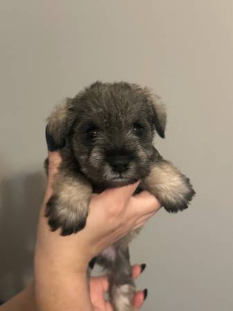We have 5 mini schnauzer puppies they will be ready to go to their new home 12/5 we have 2 males and 3 females. 2 black ones are males and the rest are females.