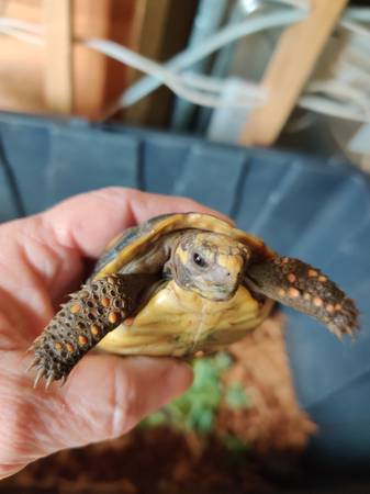 Adorable Redfoot foot tortoise baby text re-home fee of 100 dollars.