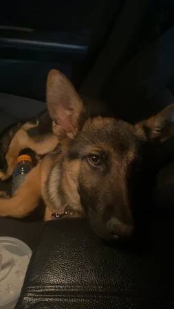 Hi! I’m rehoming Nova, an 18-week-old german shepherd puppy we’ve had for a week. She’s sweet, playful, and loves cuddles. But with military life and our 7-month-old baby, we can’t train her like she needs.