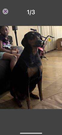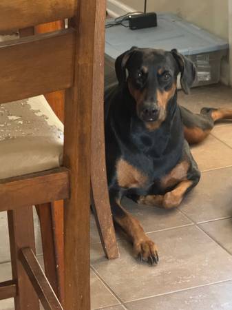 I have a female doberman. she is spaded. 100% housetrained, she knocks on door when ready to go out. Healthy- Up to date on shots.