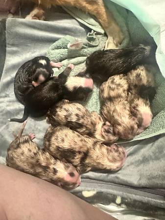 Litter will be ready to go home December 18th ish. These cuties will need forever homes. ASDR registered. Dads Lineage are grand champions. text me Purebread Mini Australian Shepherds.