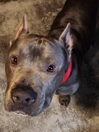 A very loyal pack and family dog. Seriously one of the sweetest dogs ive ever owned. He is just a big love bug, who i swear listens like hes human. He loves car rides, gping to the park, chilling on the couch. Hes very much a velcro dog and simply wants to be around you. He isnt a scary protection dog, but he looks the part. He barely barks as well. We are moving to Canada and his breed is restricted in the town we will be moving too (military, non optional). He will come with his food, bowl stand, steel foldable crate ($200 value alone), stuffed animals, blanket, collar, leash. Any questions, just ask.