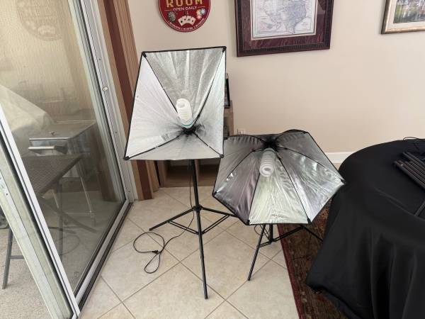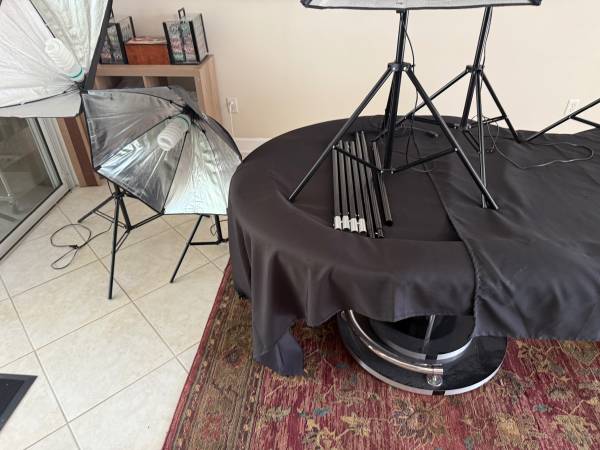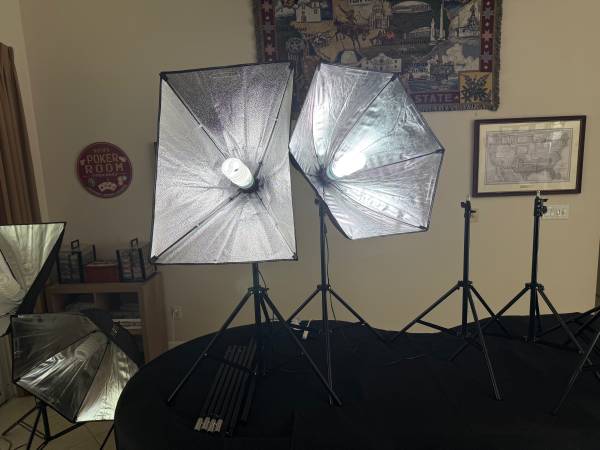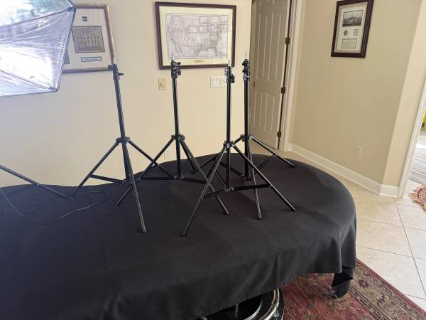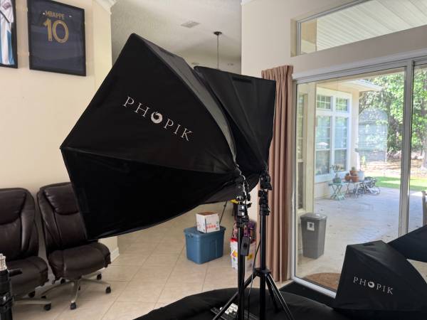 PHOPIK photography lights 2 circular. 2. Rectangular 8 tripods total with 7 extra extension poles Working condition
