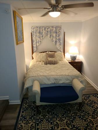 The blue and white bedroom is available 11/1/25. This room is perfect for traveling professionals. You will have full access to the shared living spaces which include: fully stocked kitchen, living/dining room, outdoor covered bar, pool, and firepit. You will have access to a private bathroom. The monthly rent includes all utilities. The owner is a travel nurse. The house is located close to 295/95 with easy access to the stadium, downtown, Mayo Clinic, beaches and Baptist Hospitals. This space is available a month-to-month lease with a 3 month minimum stay .Please feel free to ask any questions and welcome to Jacksonville!