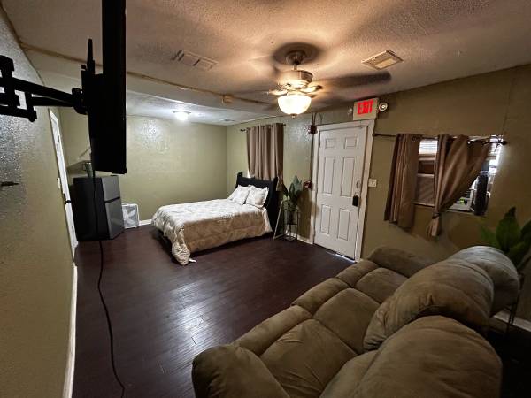 The rooms include WiFi , 50 inch tv , small refrigerator and freezer , digital lock for door,control your on climate in the room, handicap accessible ,all utilities included,space for storage brand new bed and mattress, month to month lease , no credit or background check plenty of parking,on the east side close main st and Talleyrand
