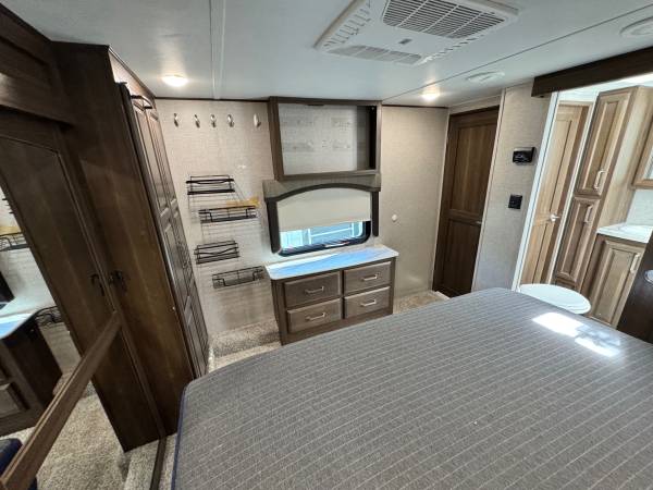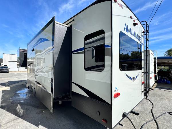 This camper is equipped with electric awning, electric jack 3 slide out full Center, Island kitchen with double door refrigerator microwave 3 burner stove with oven tv stereo fireplace 2 roof ac full bathroom with stand-up shower queen size bed washer, and dryer hook up and much more asking $25,900 or best offer