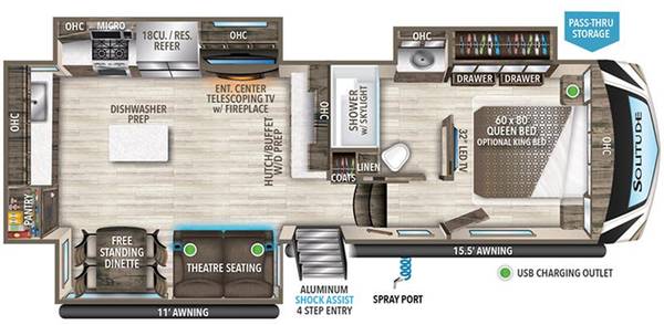 2022 Grand Design Solitude 280RK 5th wheel, 33 foot, (3) slide-outs, 6-point leveling jacks, 4-seasons insulation w/ enclosed heated underbelly, (2) large 15K BTU a/c units, high gloss fiberglass...