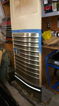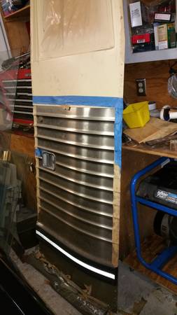 I have a new Prevost Motorhome entrance door that has never been installed or polished. It has riveted panels and I believe that is for a pre-1996 Prevost that has the 86 inch head room. Stored in my garage so it has not been in the weather. I am asking $1,500.00. The cost new if you had to have one made is over $14,000. Please contact me if you have any questions. I could deliver within 100 miles if you prepay.