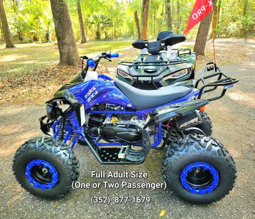 For ATVs top speed is 40-49mph, some of the best and most reliable 4-stroke engines for trail and casual riders. All of our ATVs are equipped with a rear rack and have forward and reverse. Enjoy an automatic transmission. Head lights (High and low beam) Tail lights, electric start, remote, 2 sets of keys, etc. Will also come with a tool set. 50cc-250cc Dirt bikes are also available.