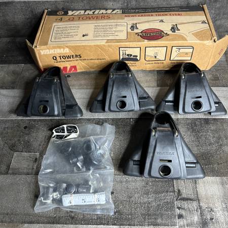 Yakima Q Towers for the roof of your vehicle. These are adjustable for different roof shapes. The model number is 00124. These have not been used and come in the original box with instructions. $100.